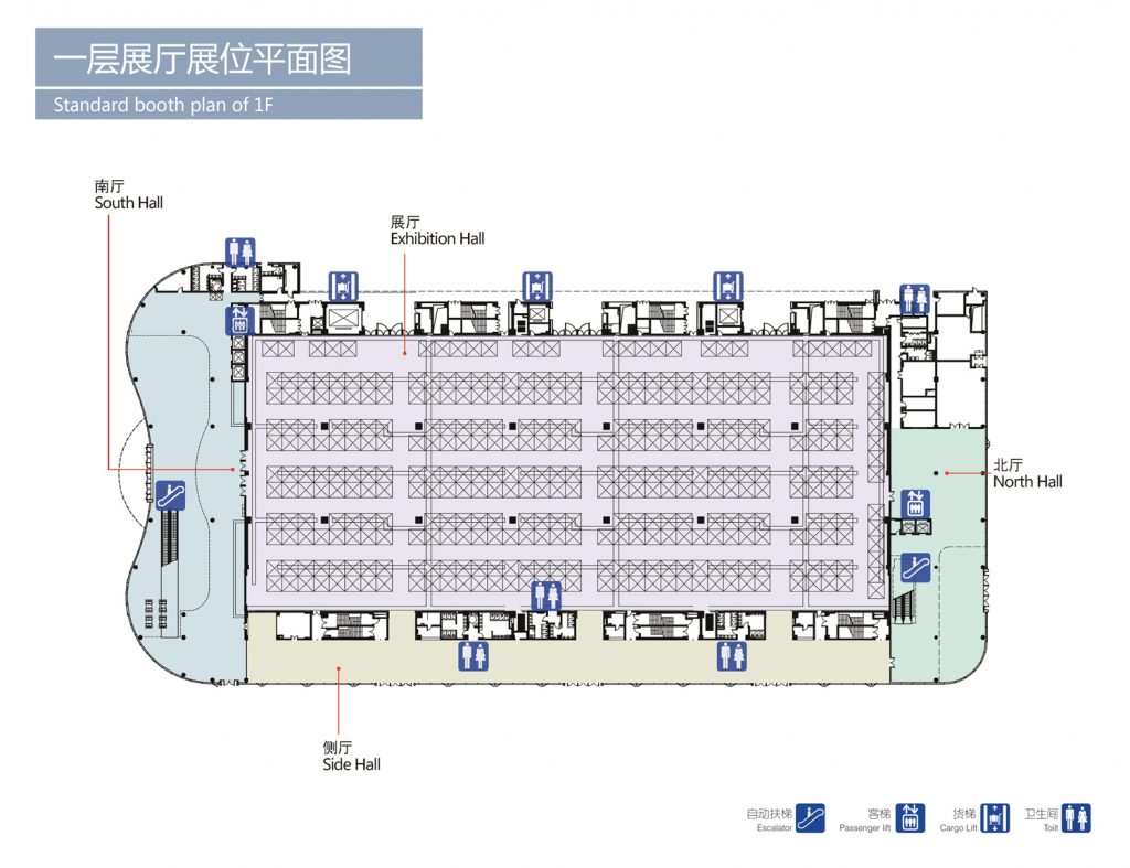 面积:6,500 m² 可规划356个标准展位 净高:7.4m 承重:0.5t/m² 柱距:18m