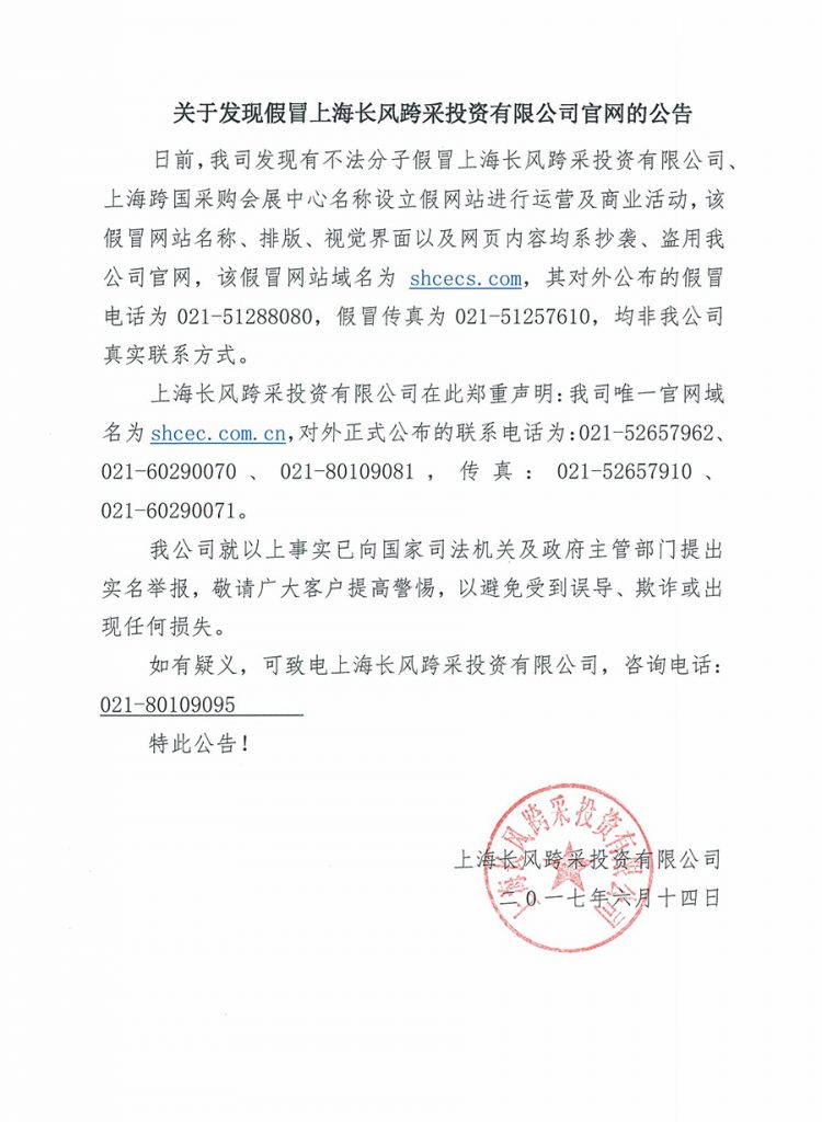 【重要】关于发现假冒上海长风跨采投资有限公司官网公告!